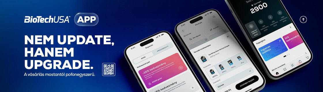 A BioTechUSA termékeket arra terveztünk, hogy segítsenek túlszárnyalni teljesítőképességed határait és támogassanak az egészséges életmód kialakításában. Nem számít, hogy a hosszú irodai órák mellett jársz edzeni, vagy a profi testépítés a hivatásod, esetleg egészséged megőrzése a célod, a saját fejlesztésű táplálékkiegészítőinkkel elérheted a következő szintet. Webáruházunkban közvetlenül a gyártótól vásárolhatod meg a BioTechUSA termékeket, mint például fehérjeporokat (közöttük Európa egyik legjobb és legnépszerűbb fehérjekészítményét, az Iso Whey Zero-t), edzés előtti formulákat, vagy akár a diétákat támogató készítményeket és vitaminokat. Portfóliónkban immár 2000 termék elérhető, melyek között találsz még izomtömegnövelőket, aminosavakat, vagy akár különböző állóképességi sportok kiegészítőit és sport ruházati termékeket is.